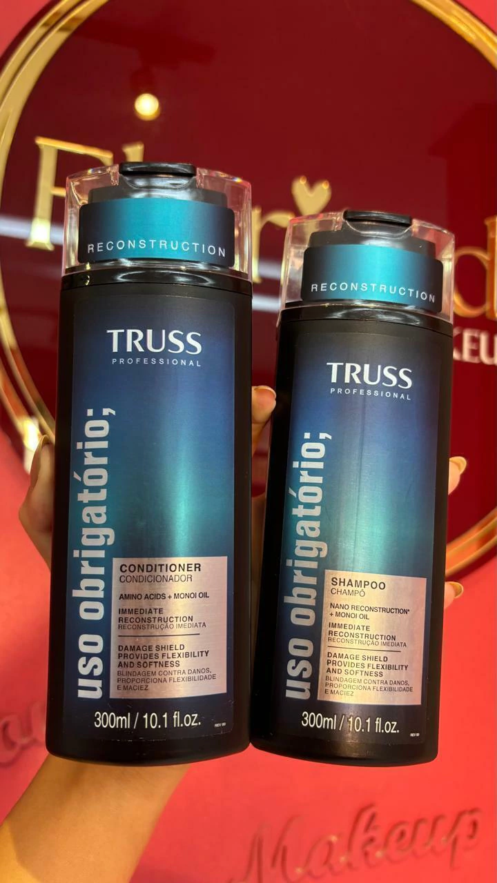 A nova versão do Kit TRUSS Uso Obrigatório combina tratamento eficaz com uma experiência sensorial única, com uma fragrância ainda mais sofisticada e duradoura, mantendo o DNA da linha. A combinação do Shampoo e Condicionador Uso Obrigatório; proporciona uma experiência completa de tratamento para cabelos danificados e ressecados. Com fórmula avançada e fragrância duradoura, a dupla age para restaurar a saúde, a maciez e o brilho dos fios.
