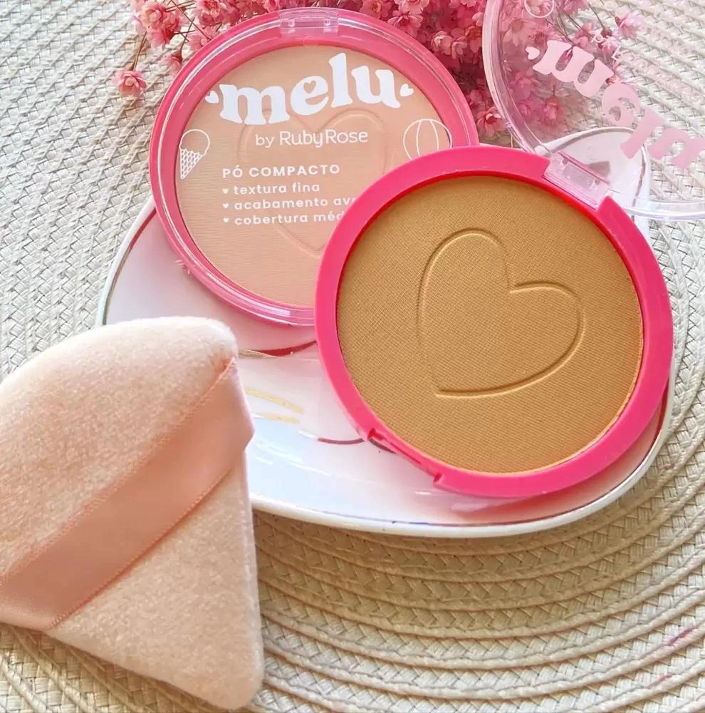 O Pó compacto da Melu possui textura fina e com acabamento aveludado, além de média cobertura, que deixa a pele mais natural.